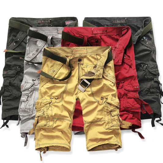Glistensport Military Style Solid Color Three-dimensional Multi-pocket Functional Casual Men's Shorts
