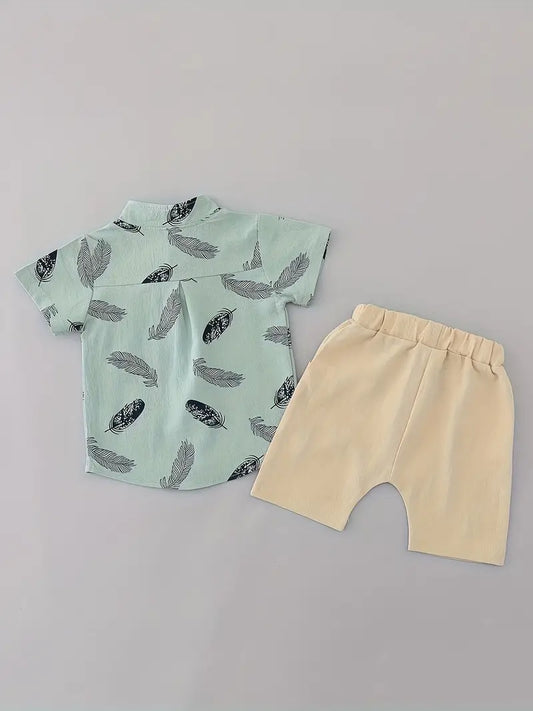 GlistenSport Toddler Summer Feather Print Shirt Shorts Set